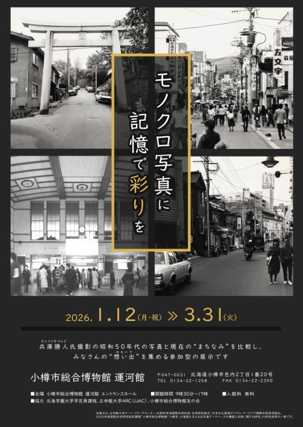 2026年1月12日(月・祝)~3月31日(火)まで開催のエントランス展「モノクロ写真に記憶で彩りを」は、写真家である兵庫勝人氏が撮影した昭和50年代の写真と現在の"まちなみ"を比較し、みなさんの"想い出"を集める参加型の展示です。