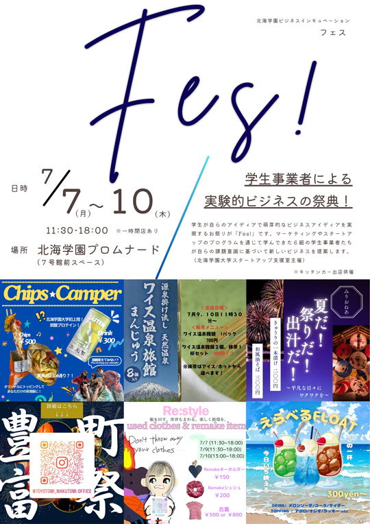 学生事業者による実験的ビジネスの祭典「Fes!」を2025年7月7日~10日に開催